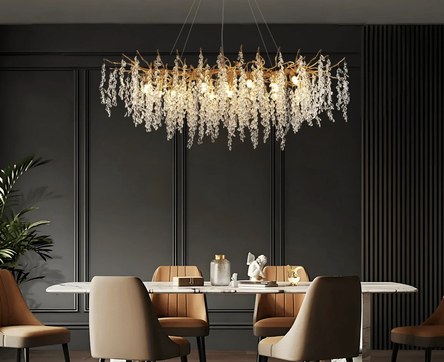 Adjustable dimming is required for chandeliers. We want to create a soft ambiance for quiet mornings or intimate evening meals.