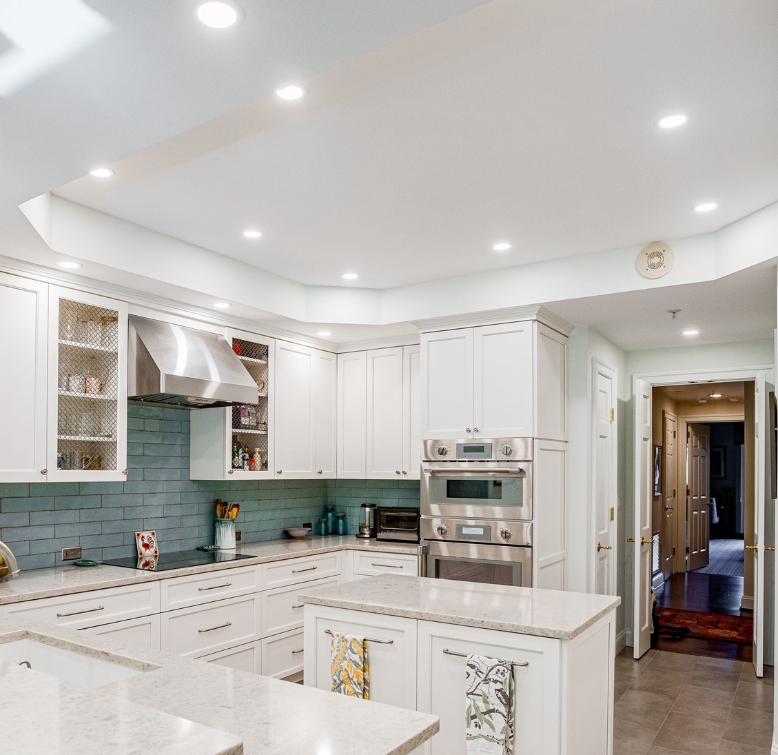 Dimmable recessed lighting is perfect for early mornings, and late night snacks, when softer lights are more welcomed. Nestled unobtrusively, recessed lights create an airy, spacious feel.