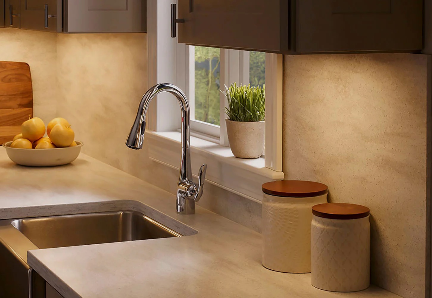 casts a warm, focused glow on your kitchen's workspaces.